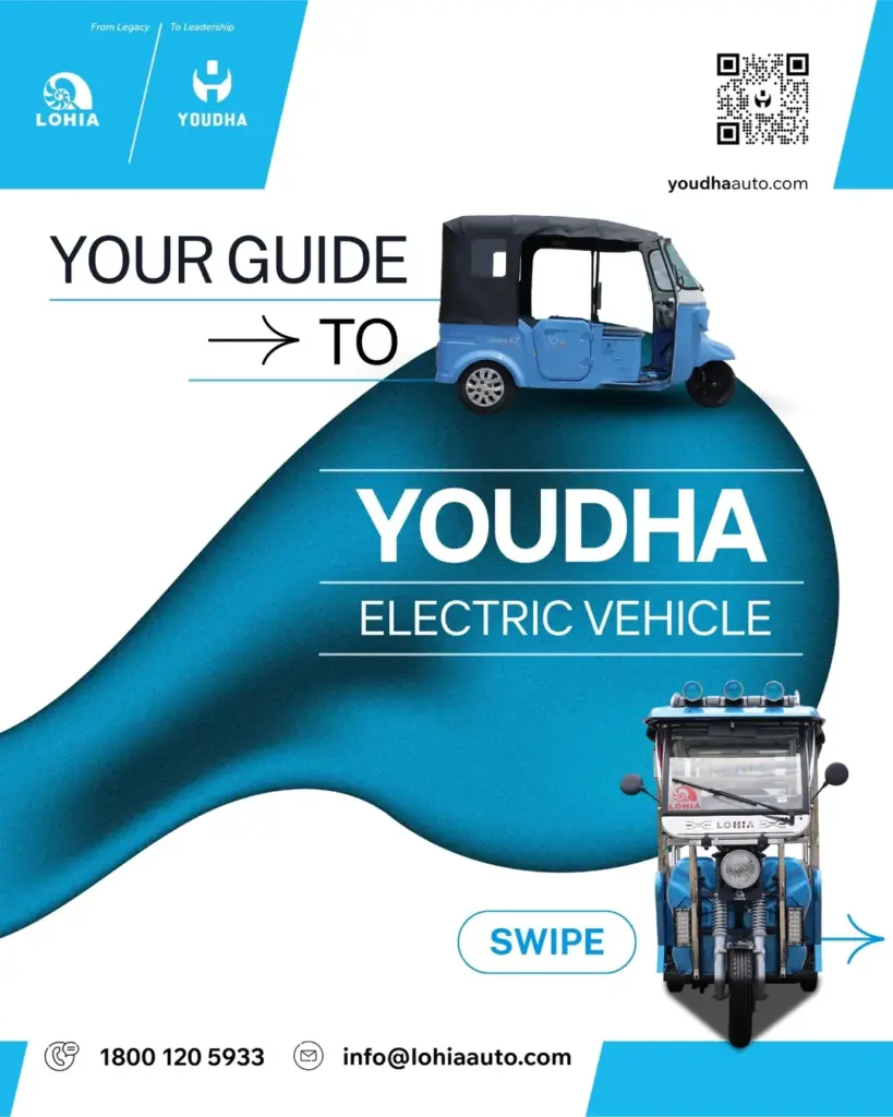 Uncategorized How the New GST Rule Boosts India’s EV Future – And What It Means for Youdha Read more View Uncategorized How the New GST Rule Boosts India’s EV Future – And What It Means for Youdha View Uncategorized EV Rickshaw vs EV Auto: Which is the Better Choice for Your Business? View Uncategorized Mahindra Treo vs Youdha EPOD: Which Cargo EV is the Better Choice for Indian Businesses? View Uncategorized TVS King EV Max vs Youdha EPOD: Choosing the Right Electric Cargo Partner View Uncategorized Electric Auto vs CNG Auto: Which One Should You Choose in 2025? View Uncategorized Bajaj GoGo vs Youdha EPOD: Why India’s Smart Buyers Are Choosing the EPOD View Blogs, Media Youdha EPOD: India’s Next-Gen Electric Warrior Makes a Confident Debut in the L5 Passenger Segment View Blogs, Media Why a Certified L5 Compact Auto is a Smarter Buy in 2025 View Blogs, Media Powering the EV Revolution: Uttar Pradesh Opens Government Land for Charging Stations as Delhi Enforces Fuel Ban View Blogs, Media How Youdha is Powering the 3-Wheeler Revolution View Blogs, Media Delhi’s Big Shift – Only BS‑VI, CNG, LNG & EV Commercial Vehicles from Nov 1, 2025 View Blogs, Media 💡 Great News for Bihar & Jharkhand: Youdha Partners with Perpetuity Capital!