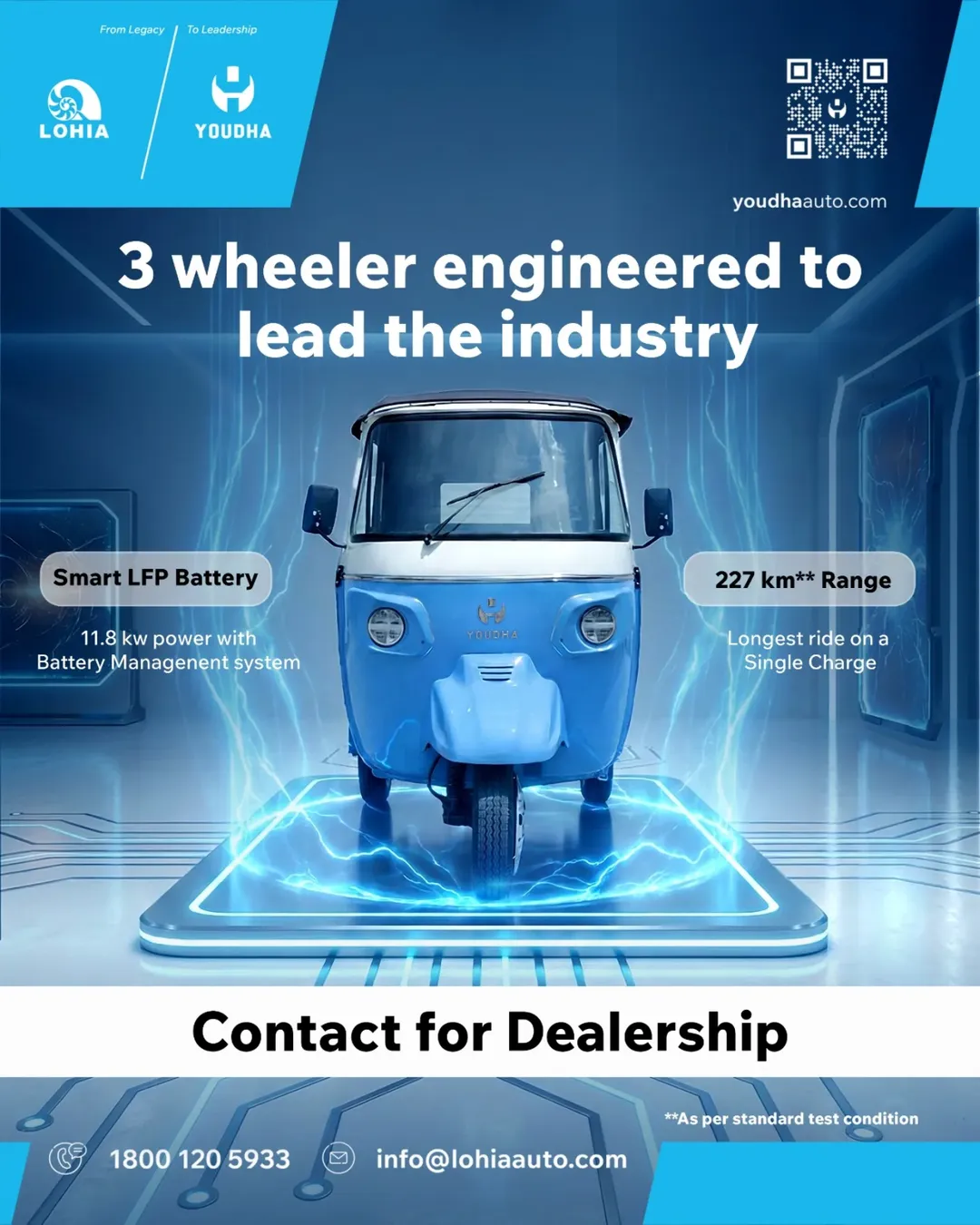 Youdha’s 2030 roadmap targets ₹1,000 crore in revenue, expanded product lines (including E Rickshaws, Loaders and commercial variants), and an extensive service and dealership network.
